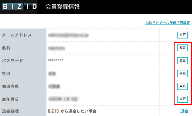 新しい情報を入力し、『変更を適用』ボタンをクリック(手続き完了)