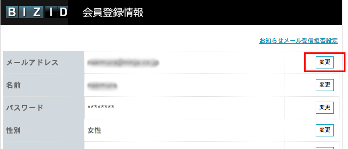 『メールアドレス』の項目の『変更』ボタンをクリック